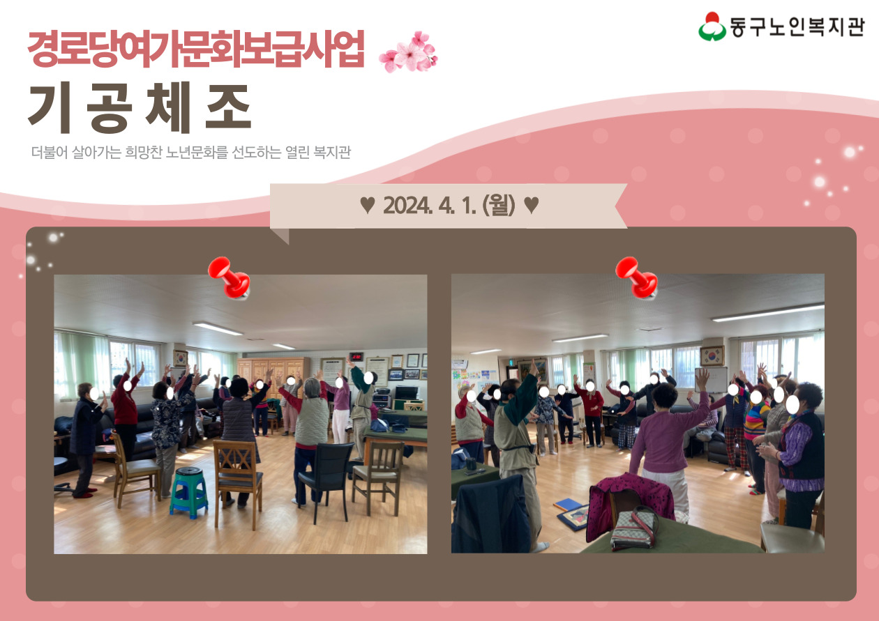 오늘은 동부아파트 경로당에서 기공체조를 진행했습니다!