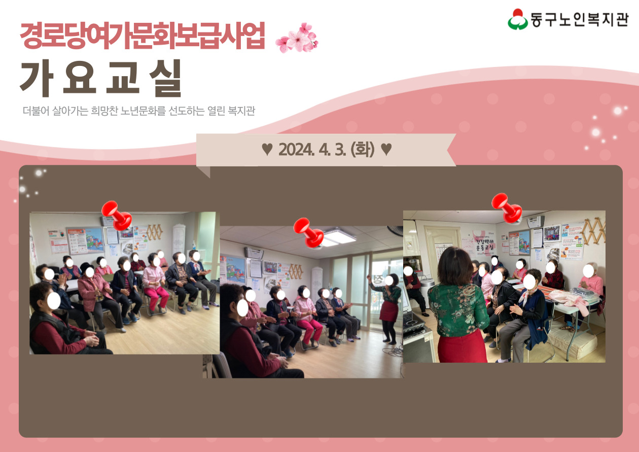 앞으로도 경로당 어르신들의 여가문화에 앞장서는 동구노인복지관이 되겠습니다~