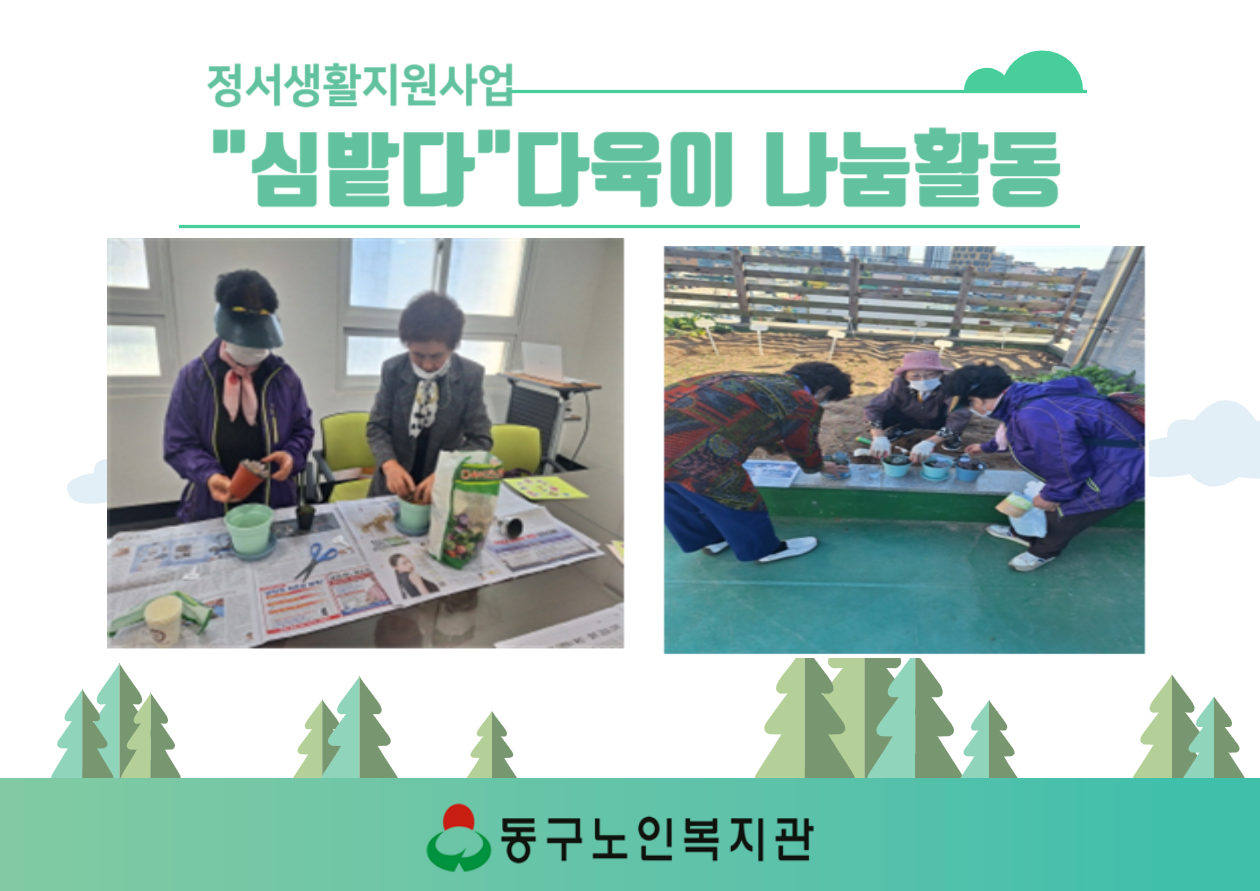 3. 내용 : 동구노인복지관에서는 노인정서생활지원을 위한 치유 프로그램 “심밭다”