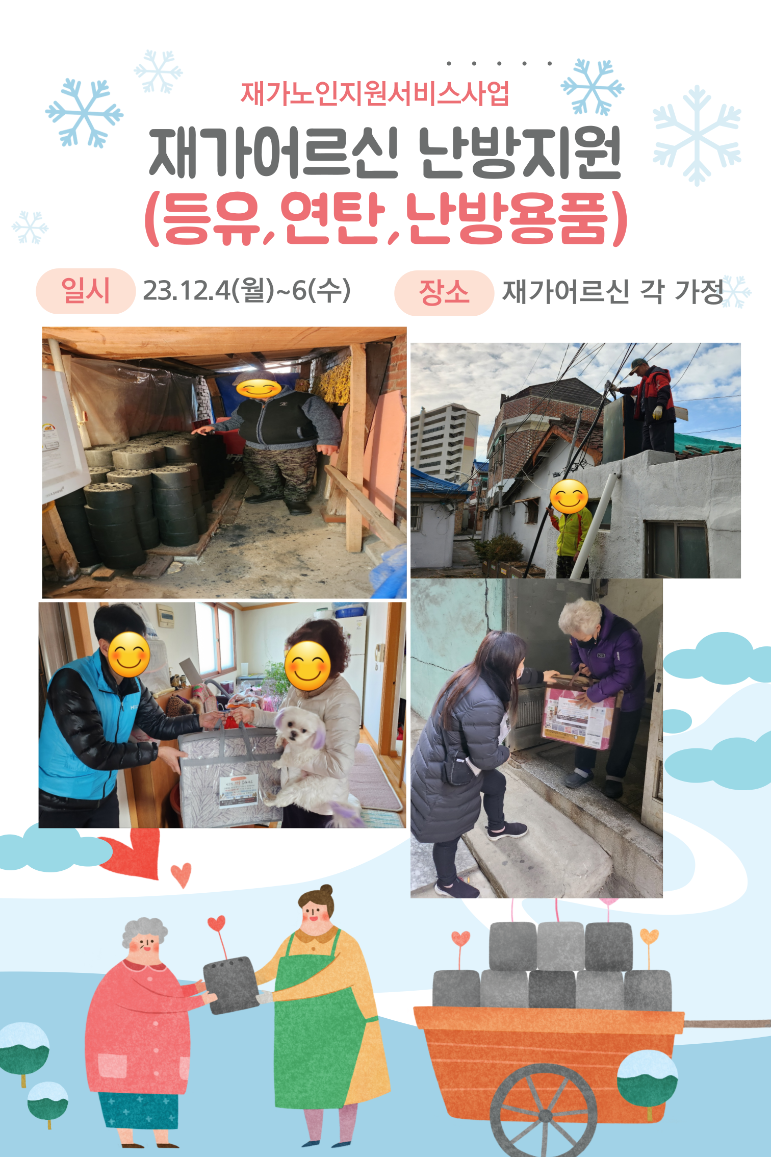 3. 내 용 : 겨울철 재가 어르신에게 난방지원(등유,연탄,난방용품) 실시