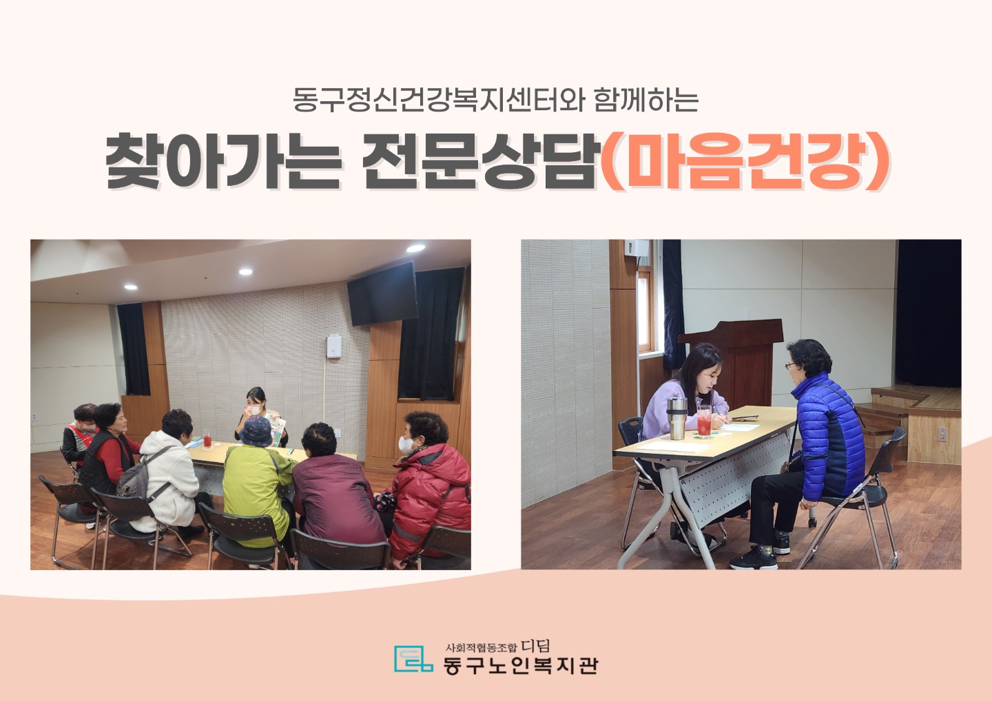 상담지원사업에서는 동구정신건강복지센터와 함께 '찾아가는 전문상담(정신건강)을 진행하였습니다.