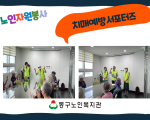 노인자원봉사 치매예방서포터즈 페이지 정보 작성자 복지관 작성일23-10-06 10:43 조회수315 본문 1. 사업명 : 노인자원봉사지원사업 치매예방서포터즈2. 일자 : 5월 ~ 현재3. 내용 : 치매예방교육을 통한 치매친화환경을 조성하고 치매를 예방하고자 함. 목록 답변 이전글 개방형 경로당 (공예교실) 23.10.06 다음글 노인자원봉사 어울림스쿨 23.10.06