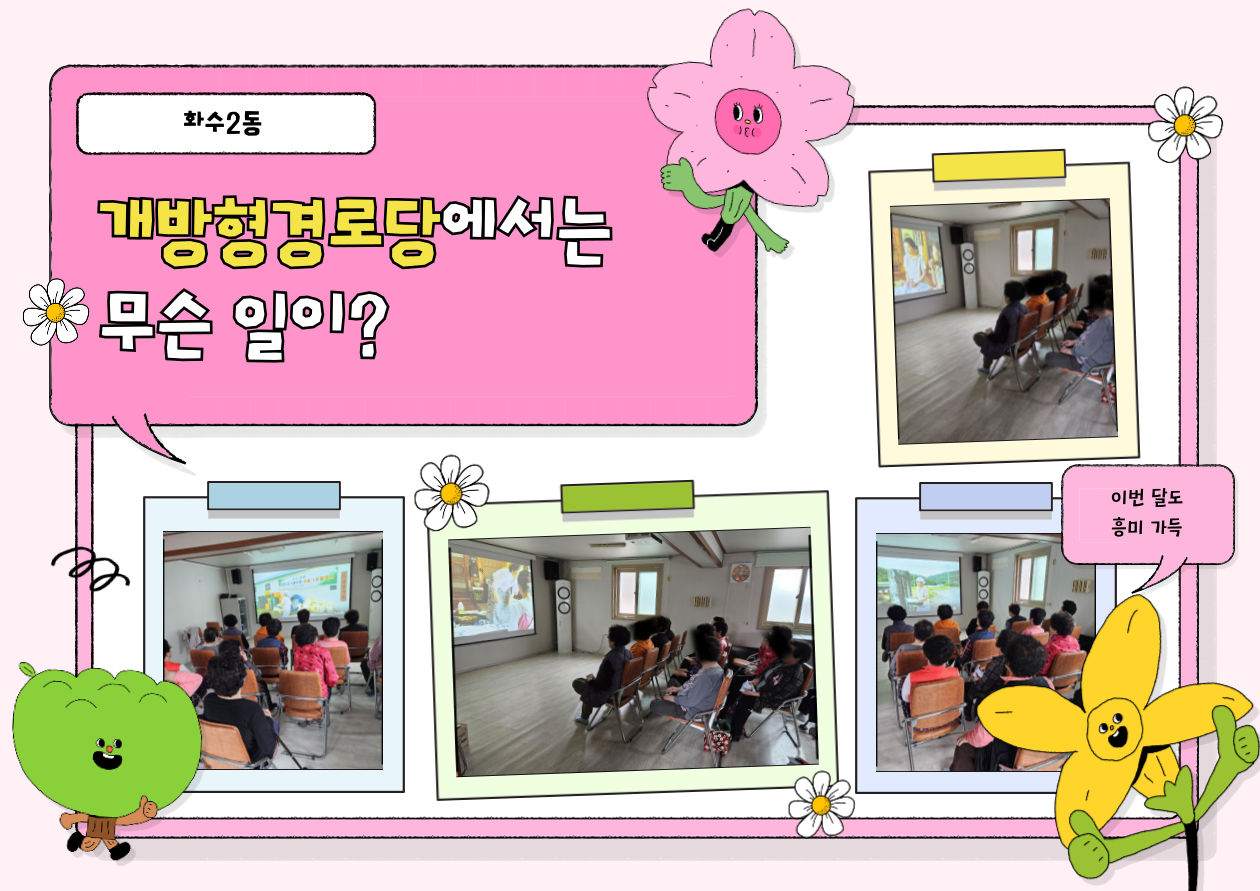 지난 4월 22일 화수2동 경로당에 첫 영화상영이 시작되엇습니다!