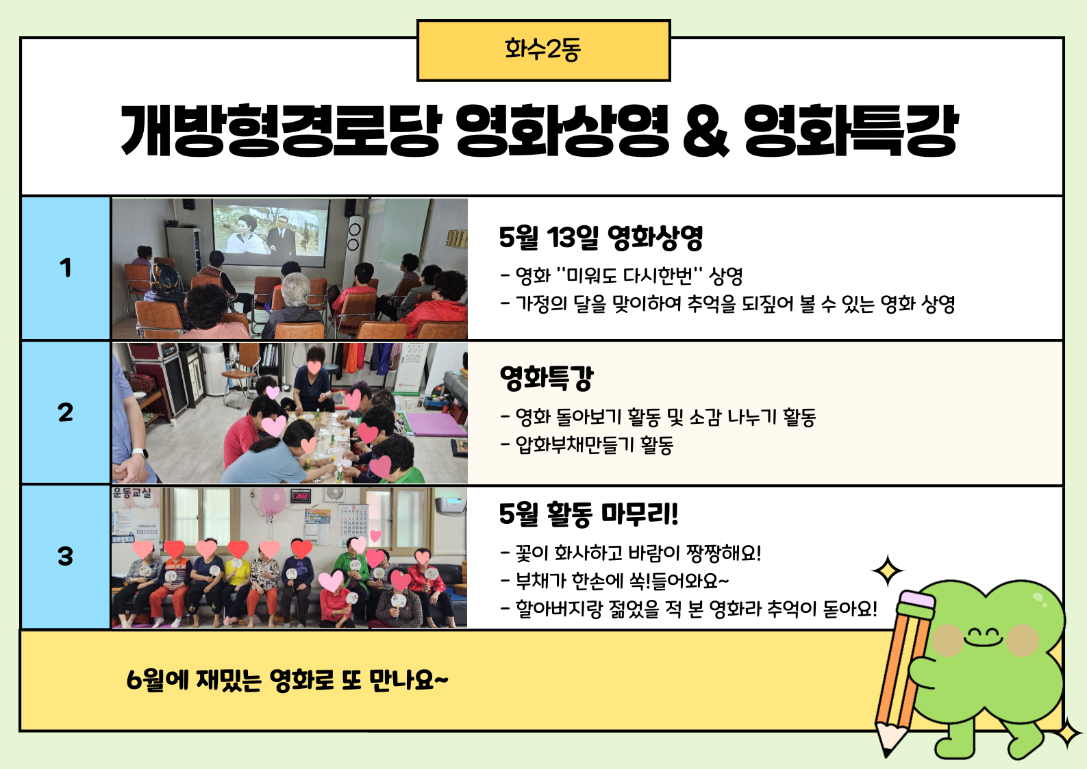 경로당여가문화보급사업 개방형경로당( 화수2동 작은 영화관)