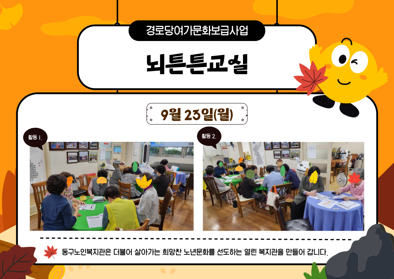 동구노인복지관은 앞으로도 어르신들이 몸과 마음, 두뇌의 건강까지 관리하는 노후를 응원합니다!