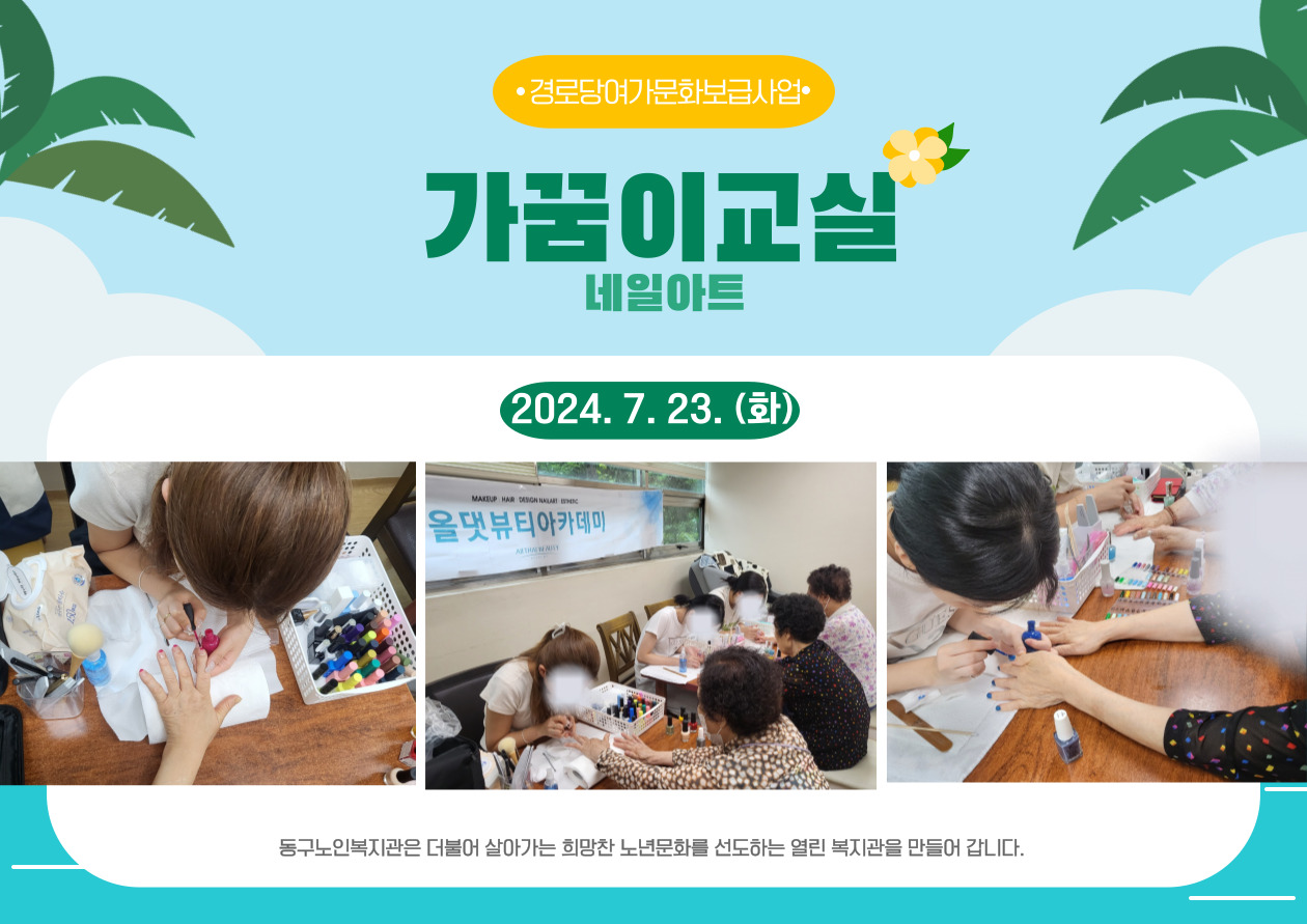 어르신들의 손톱에 화려하고 반짝이는 손톱을 선물하는 시간이 되었습니다.