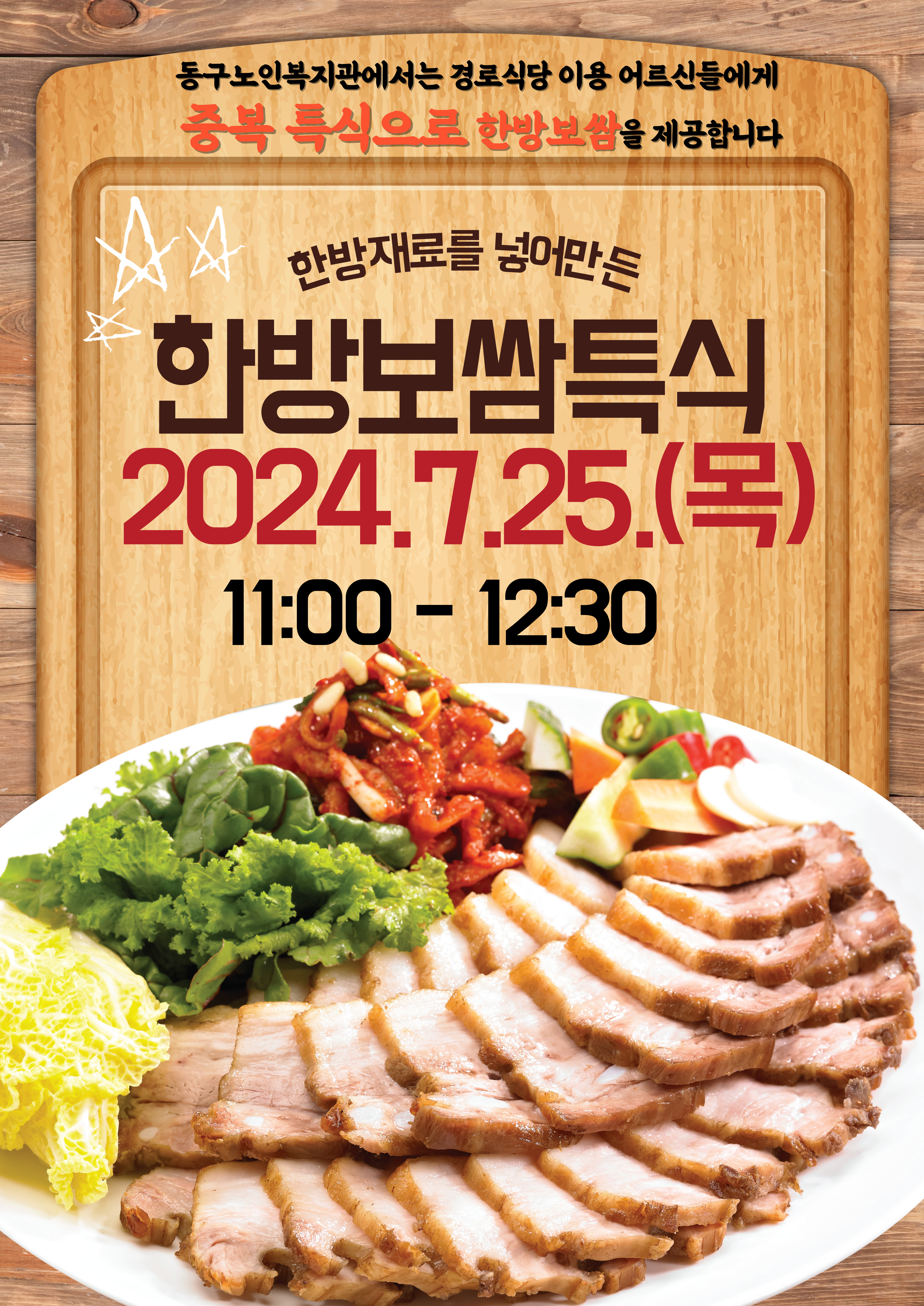 경로식당사업 7월 한방보쌈 특식 페이지 정보 작성자 복지관 작성일24-07-08 09:47 조회수348 본문 동구노인복지관 경로식당사업에서는 무료급식 및 실비급식을 이용하시는 어르신들에게 중복특식으로 한방보쌈 메뉴를 준비했습니다. 목록 답변 이전글 경로식당사업 7월 흑임자콩국수 특식 24.07.08 다음글 경로식당사업 7월 한방반계탕 특식 24.07.08