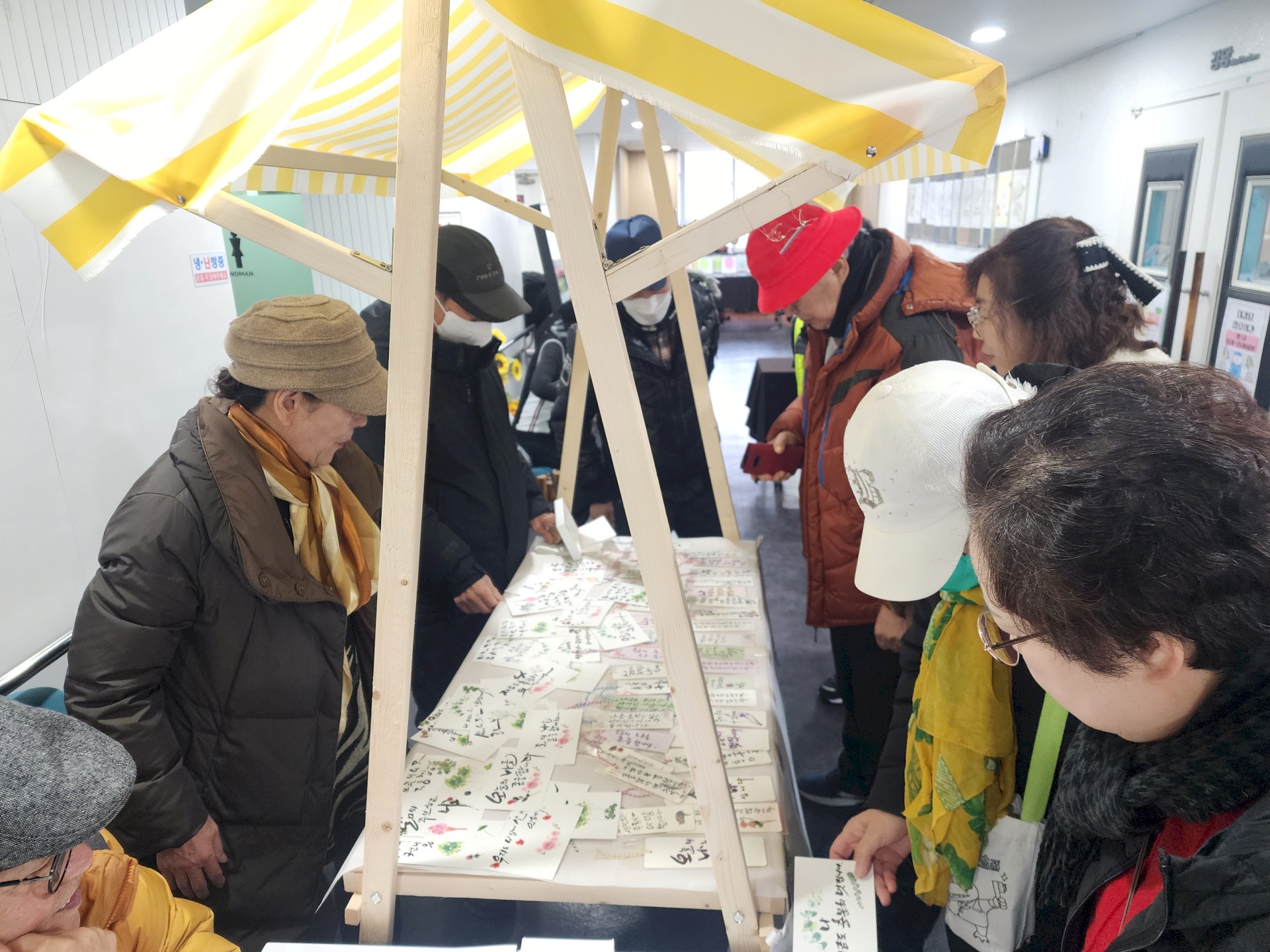 자원봉사단 어르신들이 직접 제작한 노인인식개선 책갈피를 배부하며 긍정적인 노인 인식 확산에 앞장서고,