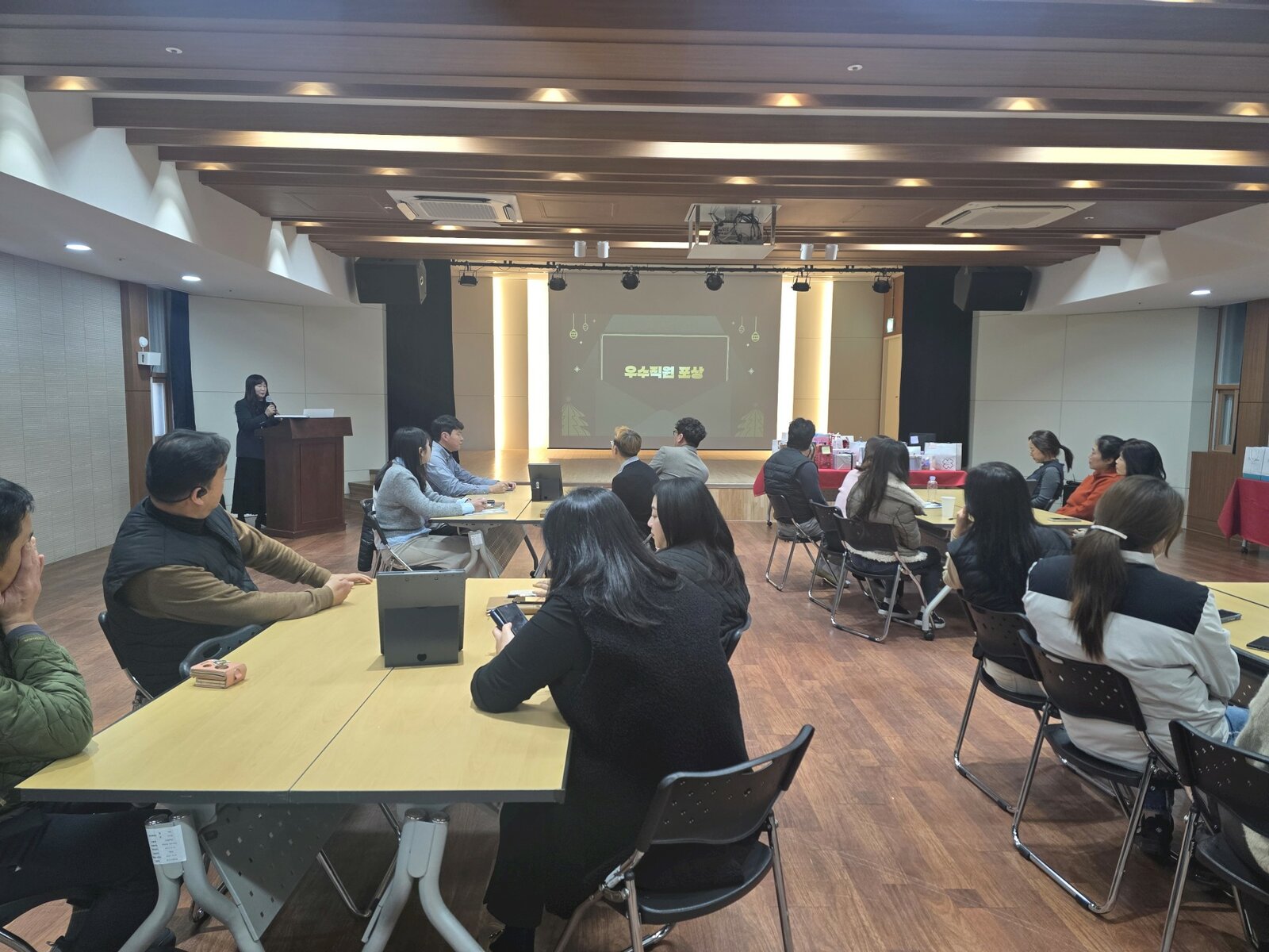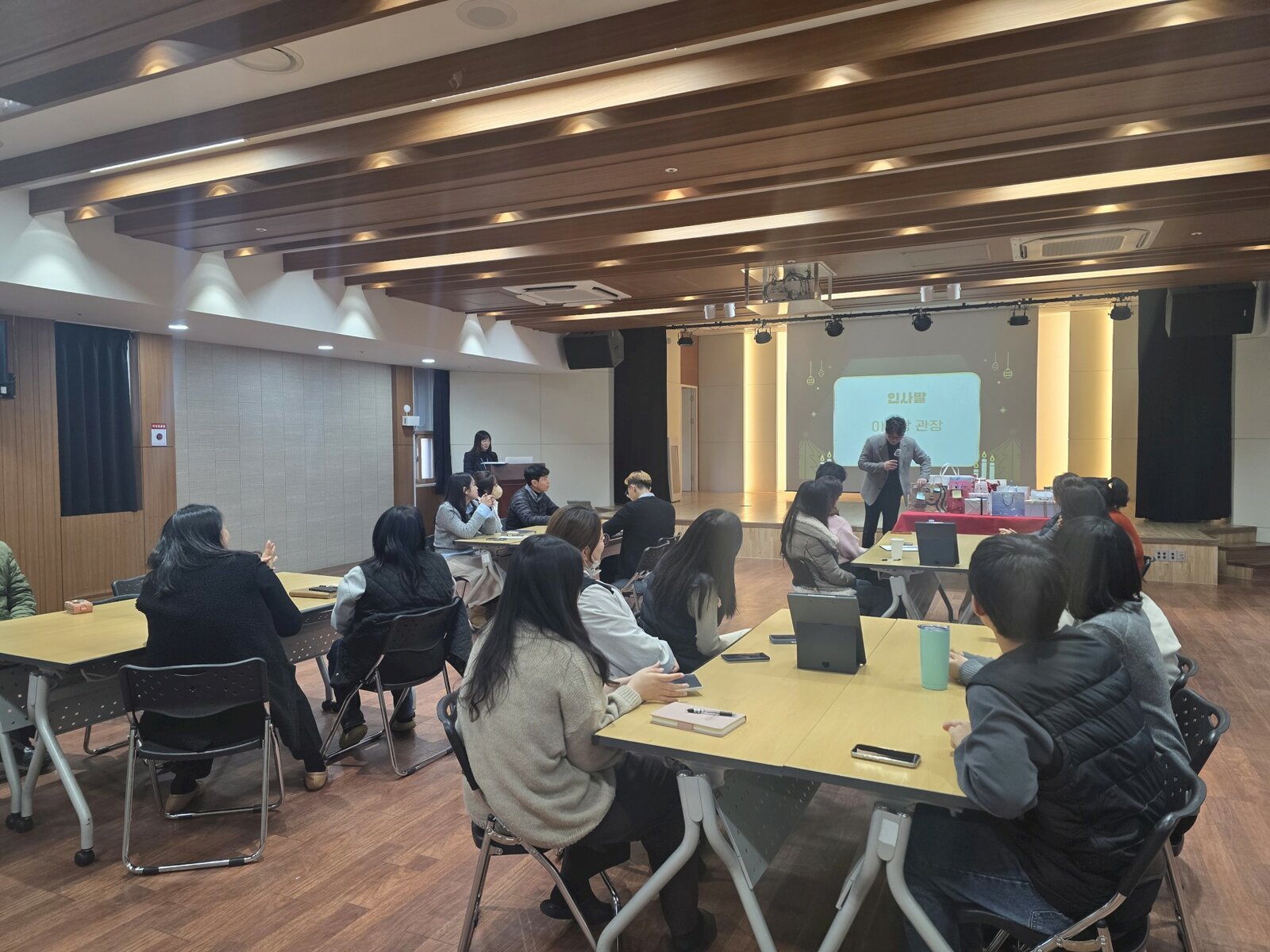 직원들이 한자리에 모여 웃음과 감사가 가득한 종무식을 진행했습니다.