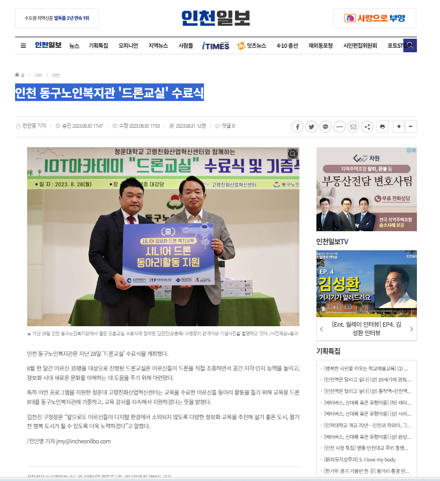 [ 인천일보] 동구노인복지관 '드론교실' 수료식 페이지 정보 작성일23.10.10 보도일자 언론사명 본문 인천 동구노인복지관 '드론교실' 수료식 - 인천일보 (incheonilbo.com) ↑ ↑ ↑ ↑ ↑ ↑ ↑ ↑ ↑ ↑ ↑ ↑ ↑ ↑ ↑ ↑ ↑ ↑ ↑ ↑ 링크를 클릭하시면 확인하실 수 있습니다. 목록 답변 이전글 [시민일보] 동구노인복지관 마술단, 어린이 위한 재능봉사 23.10.10