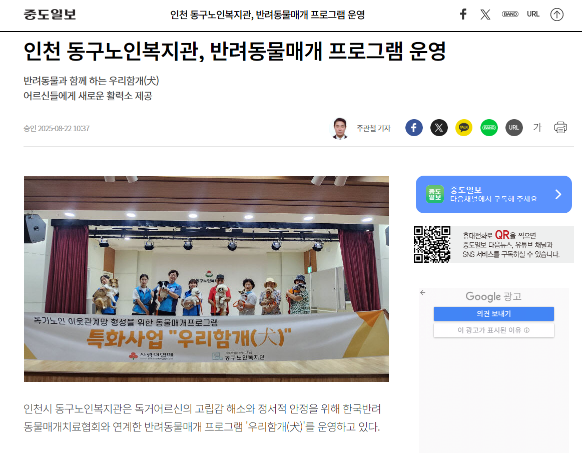 인천 동구노인복지관, 반려동물매개 프로그램 운영