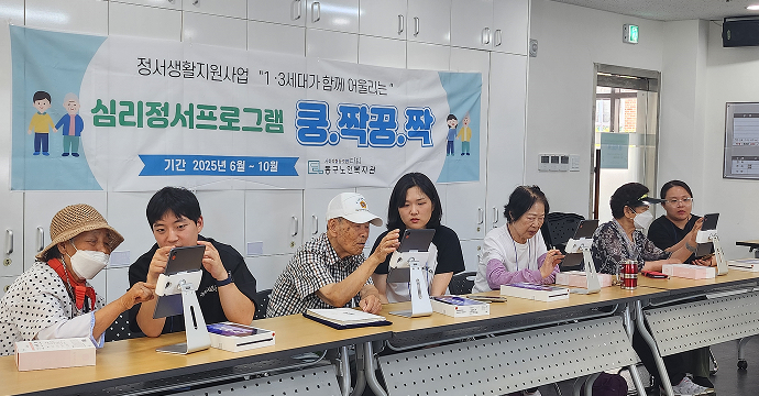 심리, 정서적으로 어려움을 겪는 독거노인에게 심리정서 프로그램을 통해 정서적 지지체계를 형성하고, 1ㆍ3세대가 함께하는 세대통합의 장을 마련한다.