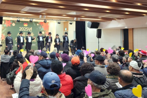 2025 사회교육사업 성과발표회 현장 12월 15일(월), 복지관 대강당에서 어르신들의 배움과 성장을 기념하는 ‘2025 사회교육사업 성과발표회’를 성황리에 개최했습니다.본 공연에 앞서 진행된 식전 행사에서는 올 한 해 어르신들을 위해 헌신해 주신 강사님들께 감사를 전하는 우수강사 시상식이 진행되었습니다. 상·하반기 강사평가를 통해 선정된 우수강사님들께 감사 인사를 전하며 훈훈한 시작을 알렸습니다.이어진 발표회 무대에서는 총 12개 프로그램, 344명의 어르신이 주인공이 되어 그동안 갈고닦은 실력을 마음껏 펼쳐 주셨습니다.무대를 가득 채운 어르신들의 열정적인 모습에 관객들의 뜨거운 박수가 끊이지 않았습니다. 한 해 동안 최선을 다해 참여해 주신 어르신들과 강사님, 함께해주신 모든 분께 깊은 감사를 드립니다.우리 복지관은 앞으로도 어르신들의 행복한 배움과 활기찬 노후를 위해 최선을 다하겠습니다!