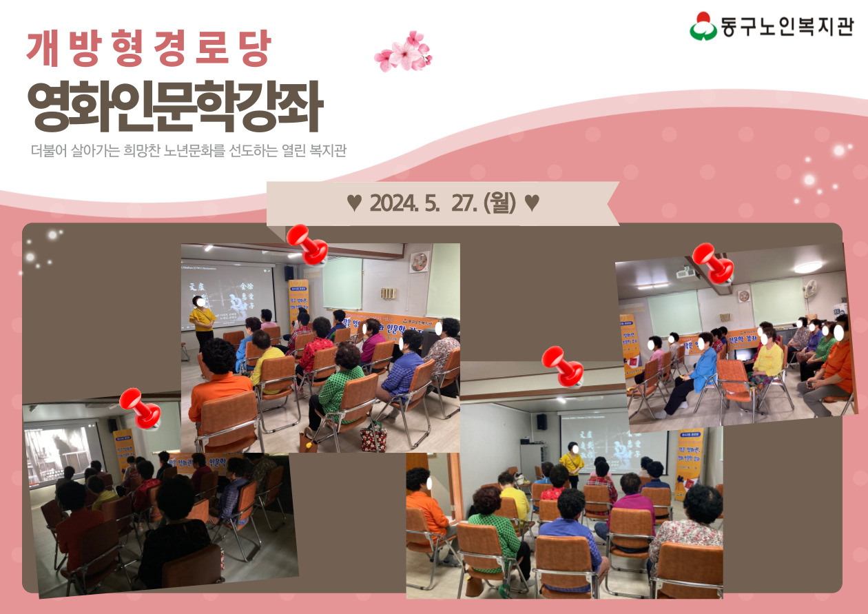 동구 지역주민을 대상으로 영화 인문학강좌를 진행합니다.