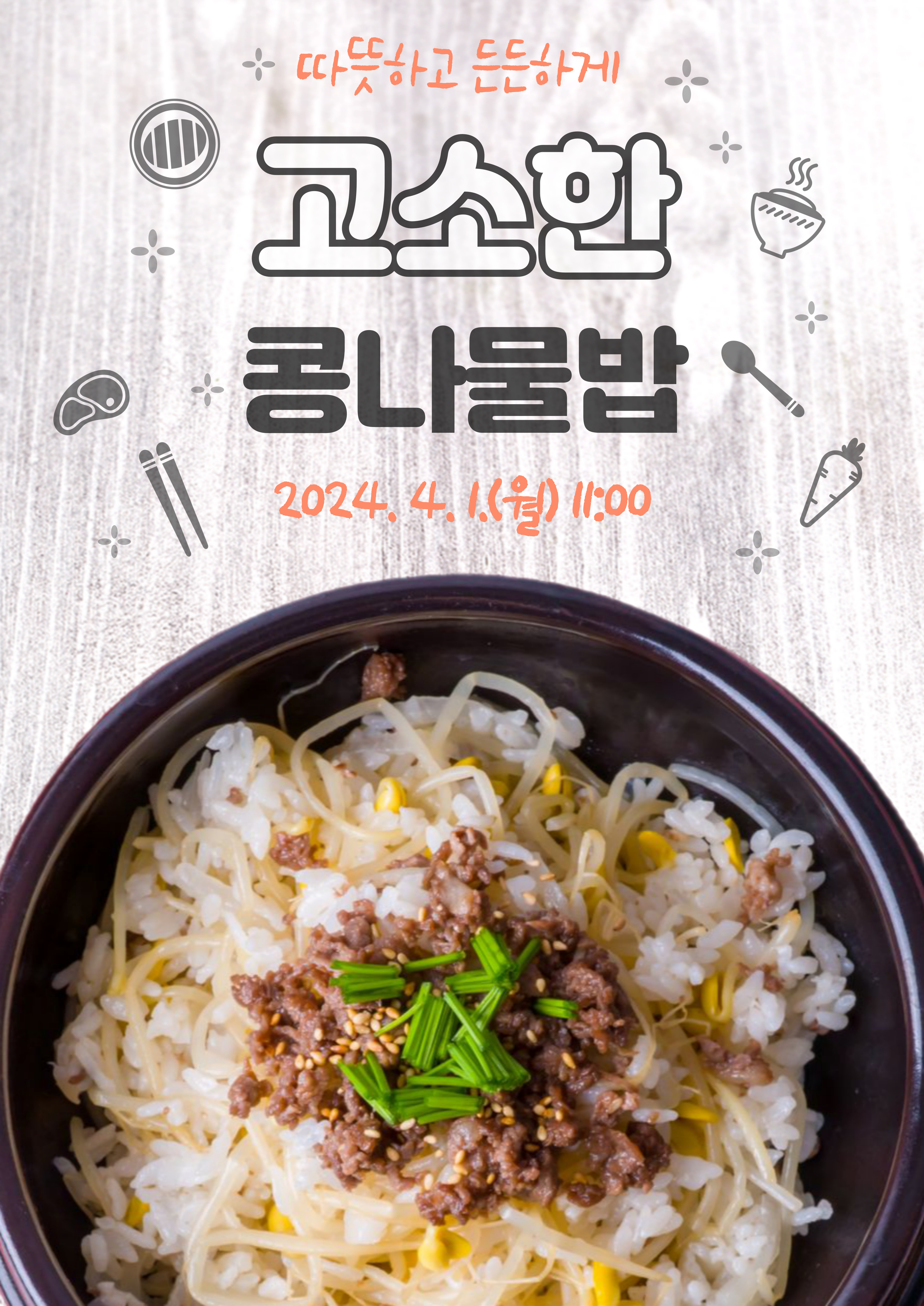 경로식당 4월 콩나물밥 특식 행사 페이지 정보 작성자 복지관 작성일24-04-04 09:26 조회수268 본문 동구노인복지관 경로식당사업에서는 무료급식 및 실비급식을 이용하시는 어르신들에게 고소한 콩나물과 소고기가 들어간 콩나물밥 메뉴를 준비했습니다. 목록 답변 이전글 경로식당 4월 짜장밥 특식 행사 24.04.04 다음글 경로당여가문화보급사업 가요교실 24.04.03