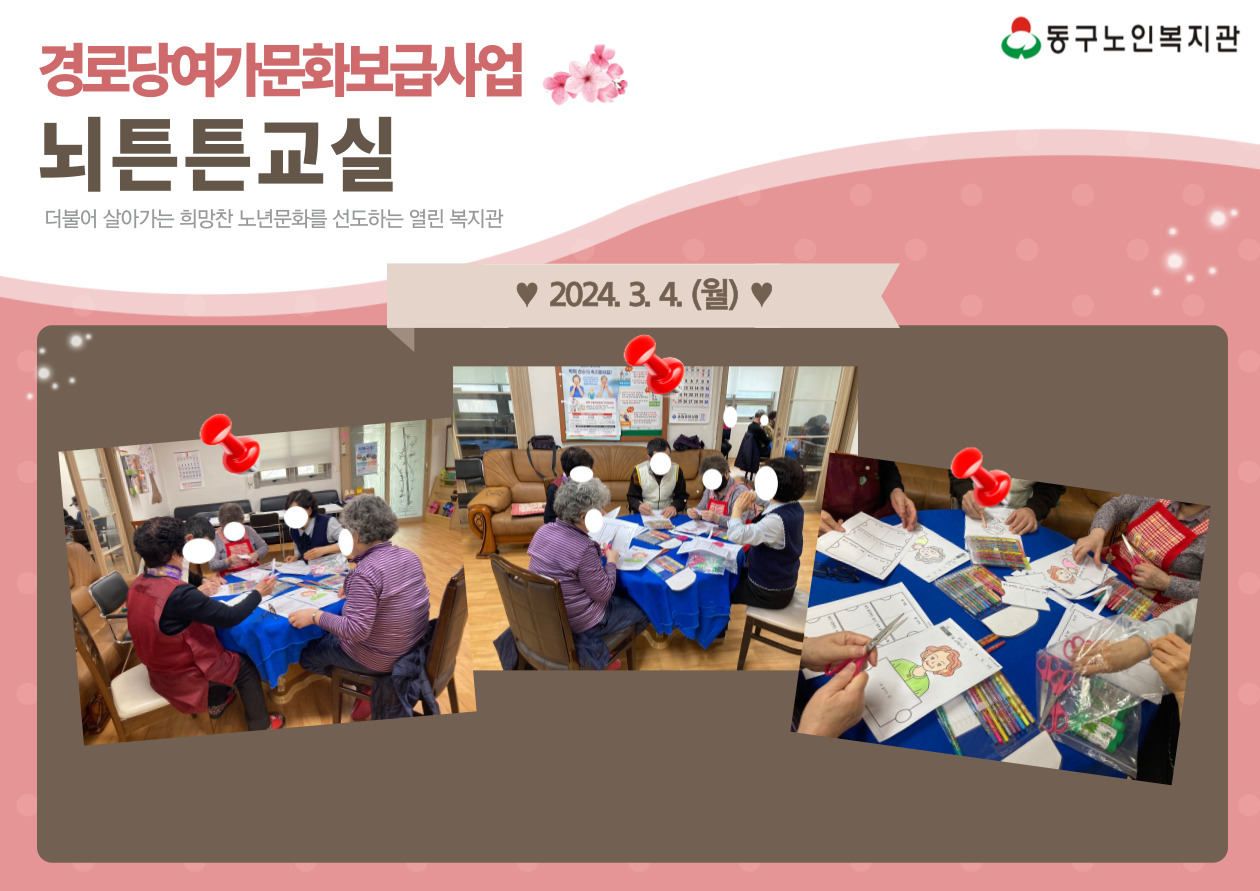 동구노인복지관은 2024년 3월 경로당여가문화보급사업 프로그램 개강을 맞이하였습니다.