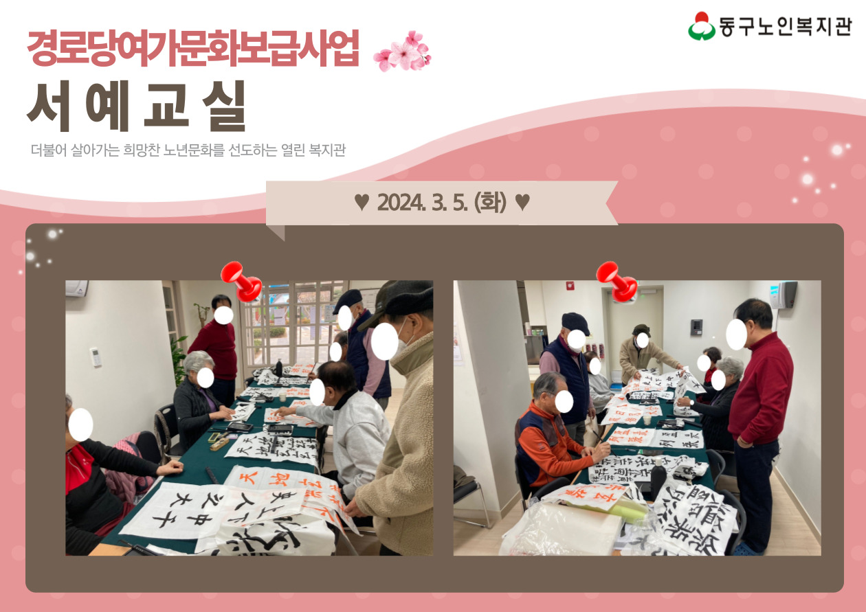 2024년 3월 5일 화요일 LH브리즈힐 경로당에서 서예교실 수업을 진행하였습니다.