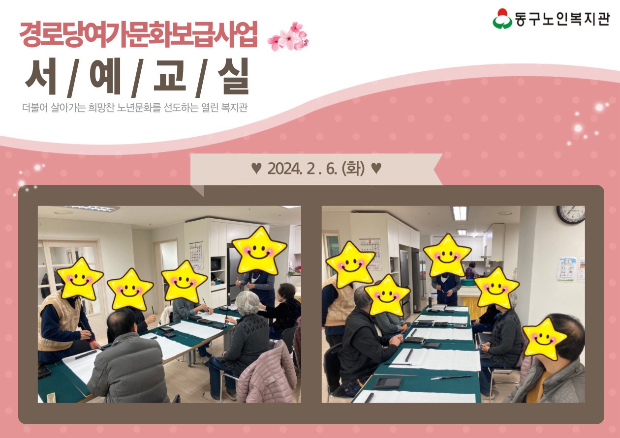2024년 2월 6일 화요일 LH브리즈힐 경로당에서 서예교실 첫 번째 수업을 진행하였습니다!