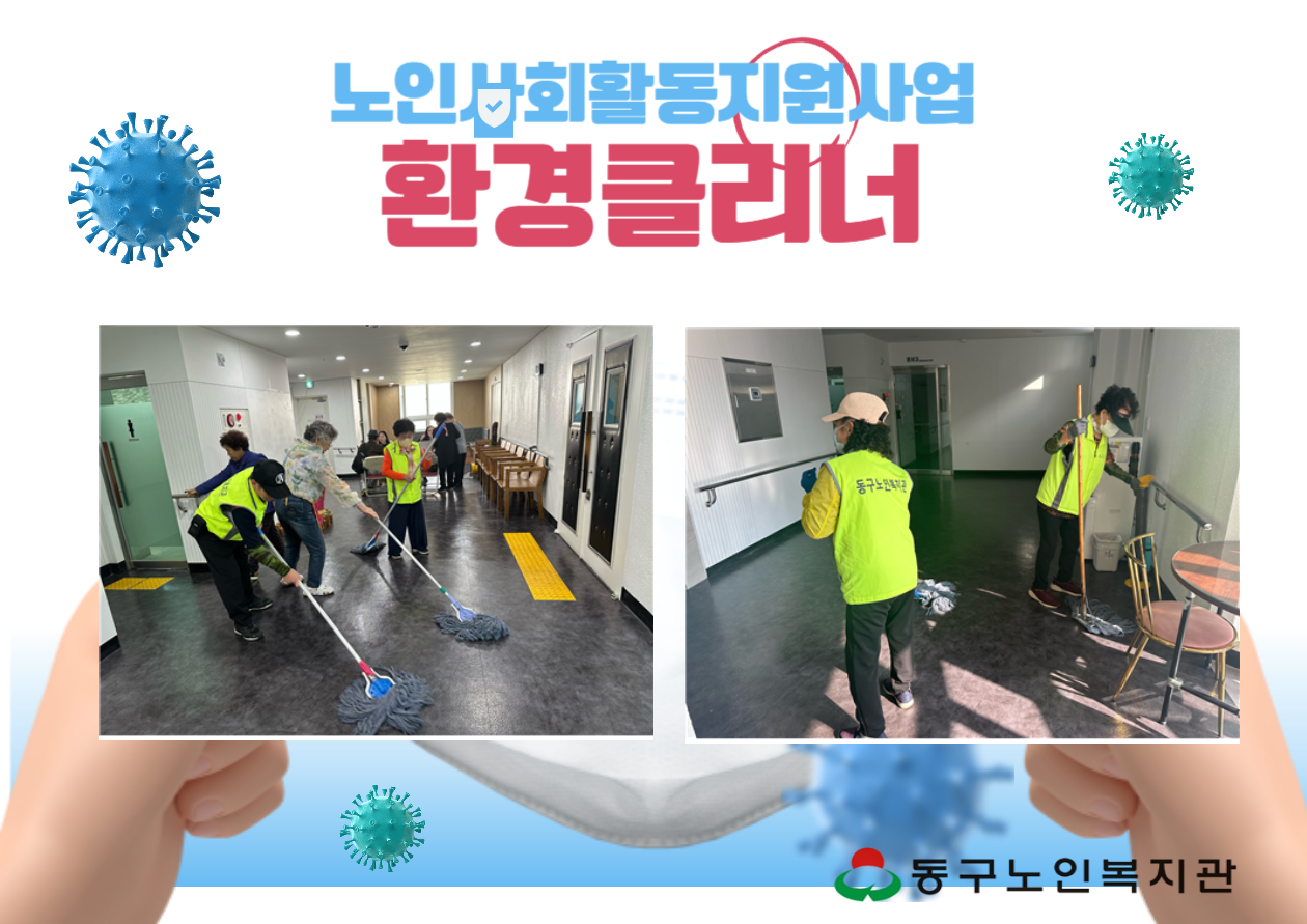 노인사회활동지원사업 복지시설길라잡이(환경클리너) 페이지 정보 작성자 복지관 작성일23-10-12 13:34 조회수338 본문 1.사업명: 복지시설길라잡이(환경클리너)2.활동시간: 월 10회, 일 3시간 활동3.내용: 복지관 본관 청소 목록 답변 이전글 노인사회활동지원사업 온기한끼사업단(도시락배달) 23.10.12 다음글 노인사회활동지원사업 온기한끼사업단 23.10.12