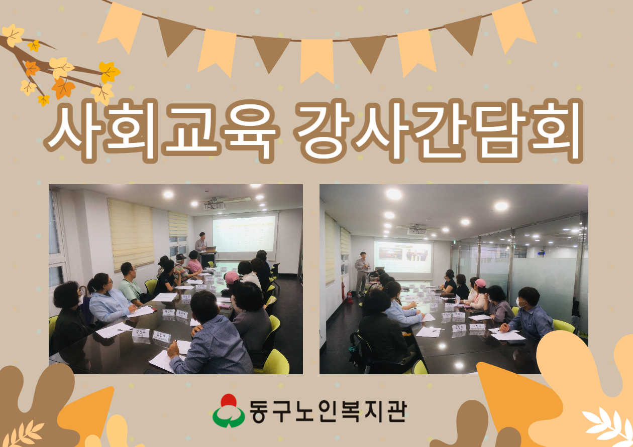 3.내용 : 동구노인복지관에서는 강사간담회를 진행하고 있으며 강사간담회를 통해 프로그램 진행상의 문제점 및 애로사항을 토론하고 공지사항을 전달하는 자리를 마련하고자 합니다.