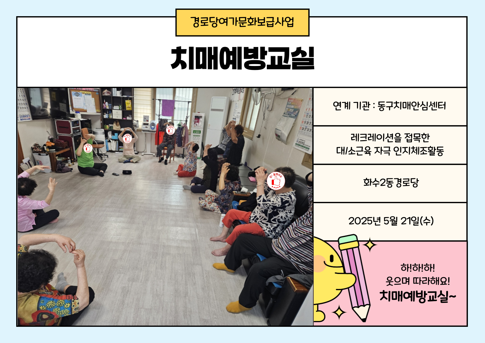 - 다음글 경로당여가문화보급사업 개방형경로당( 화수2동 작은 영화관) 25.05.23