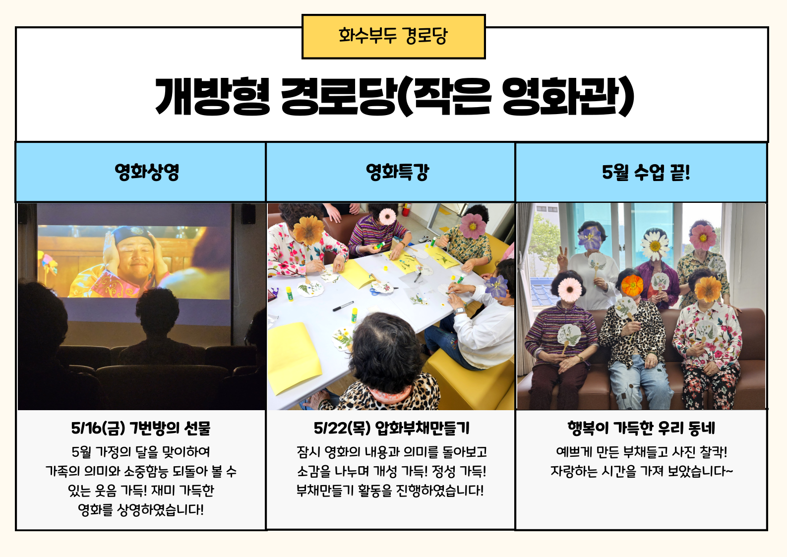 지난 5월 16일(목)에 가정의 달을 맞이하여 '7번 방의 선물'영화상영과