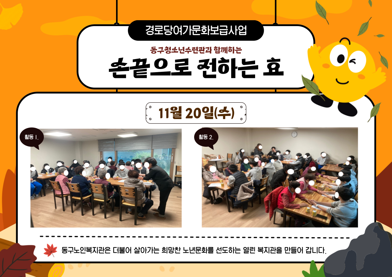 동구노인복지관은 앞으로도 세대를 아울러 사랑이 넘치는 노후를 응원합니다!
