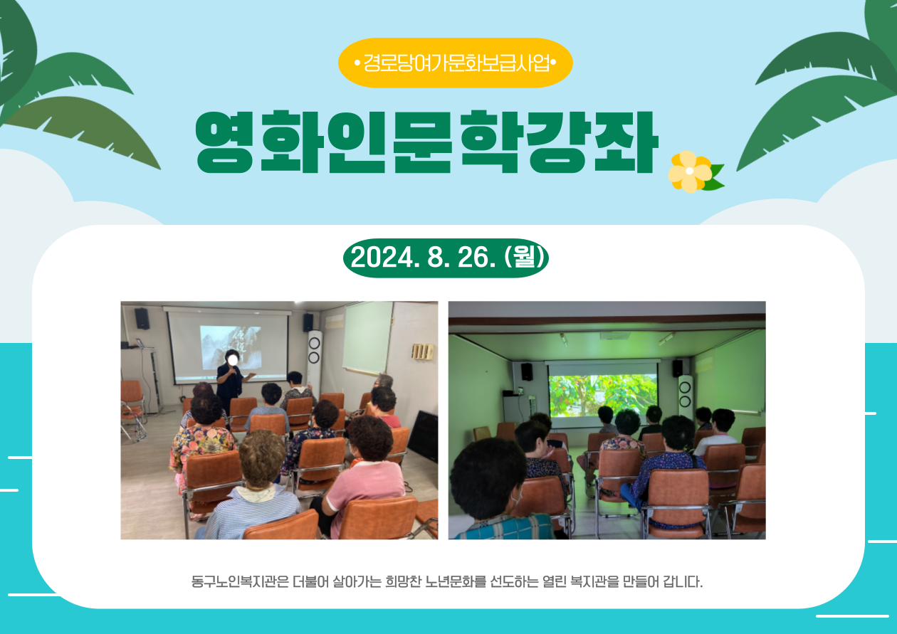 동구 지역주민을 대상으로 영화 인문학강좌를 진행합니다.