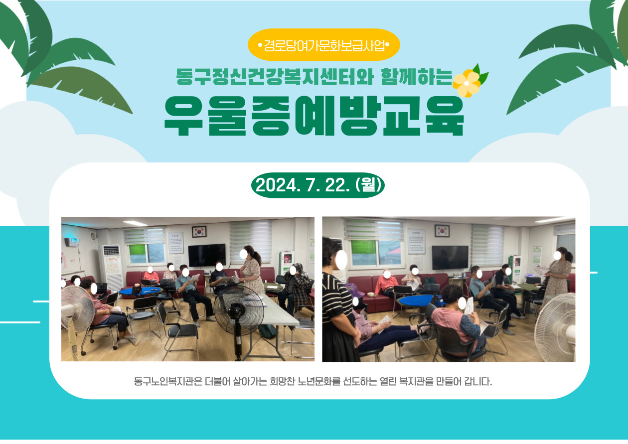 동구정신건강복지센터 연계 프로그램으로 우울증 예방교육과 함께