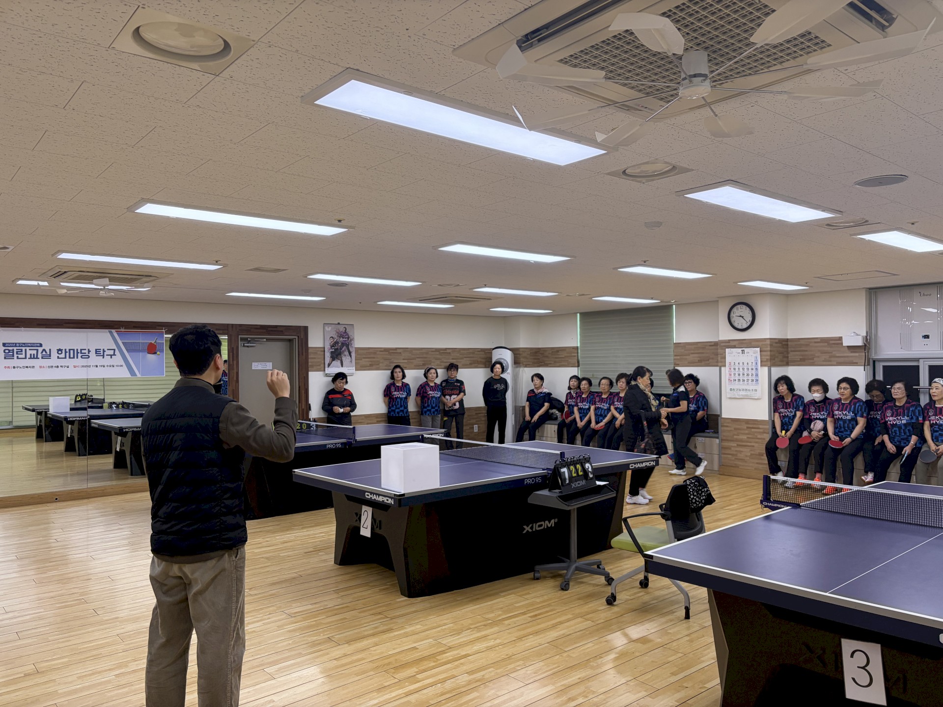 열린교실에서는 혼합복식 탁구 친선경기가 진행되었습니다.