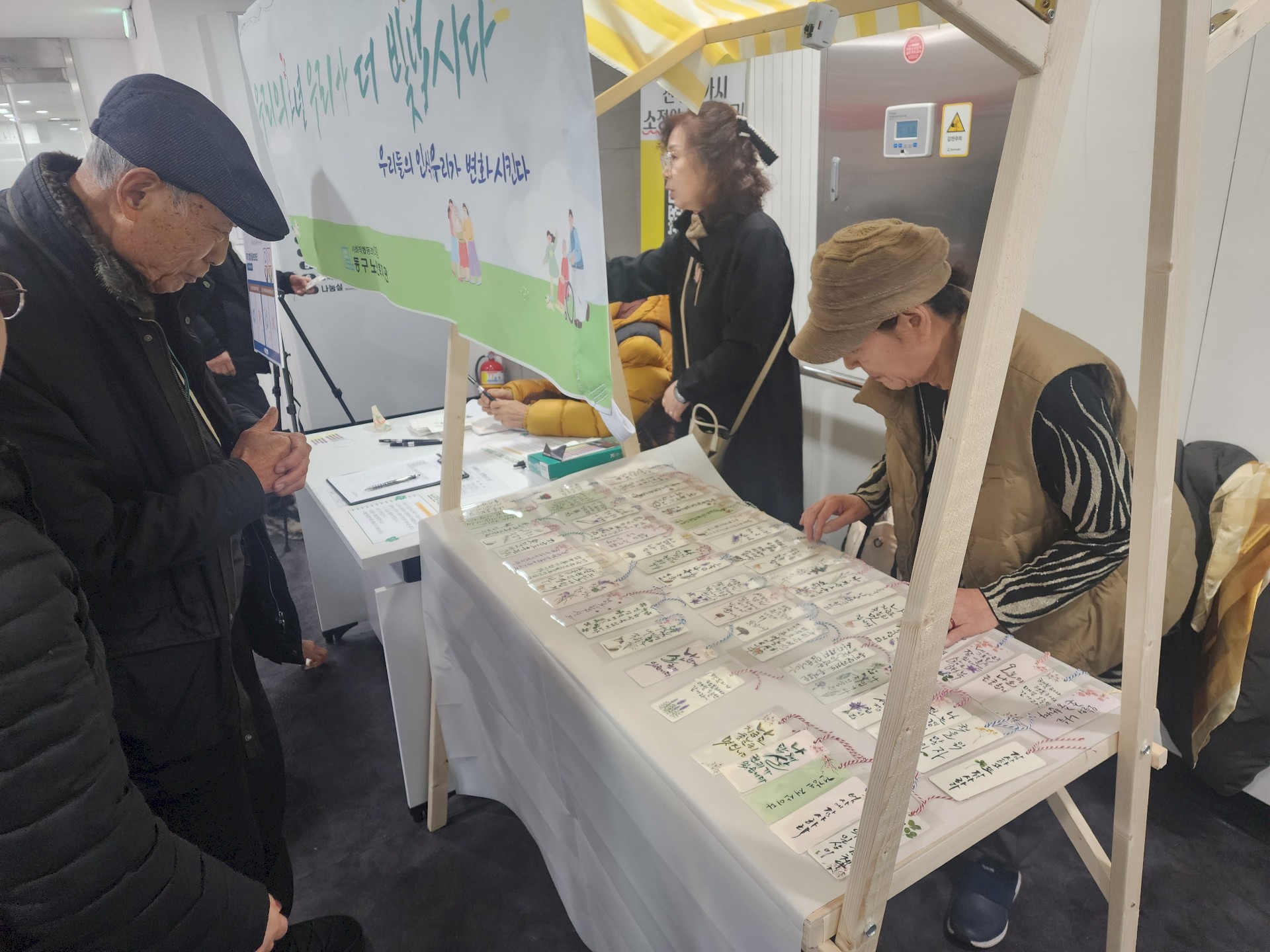 자원봉사단 어르신들이 직접 제작한 노인인식개선 책갈피를 배부하며 긍정적인 노인 인식 확산에 앞장서고,