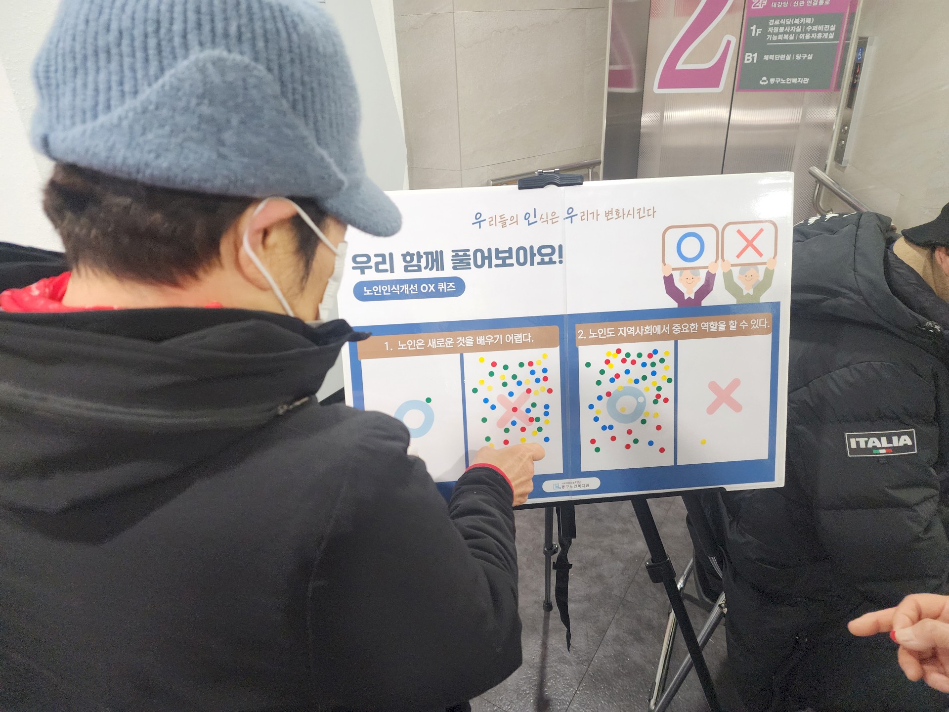 노인인식개선 OX퀴즈를 통해 어르신들의 인식을 함께 확인하고 소통하는 시간을 가졌습니다.