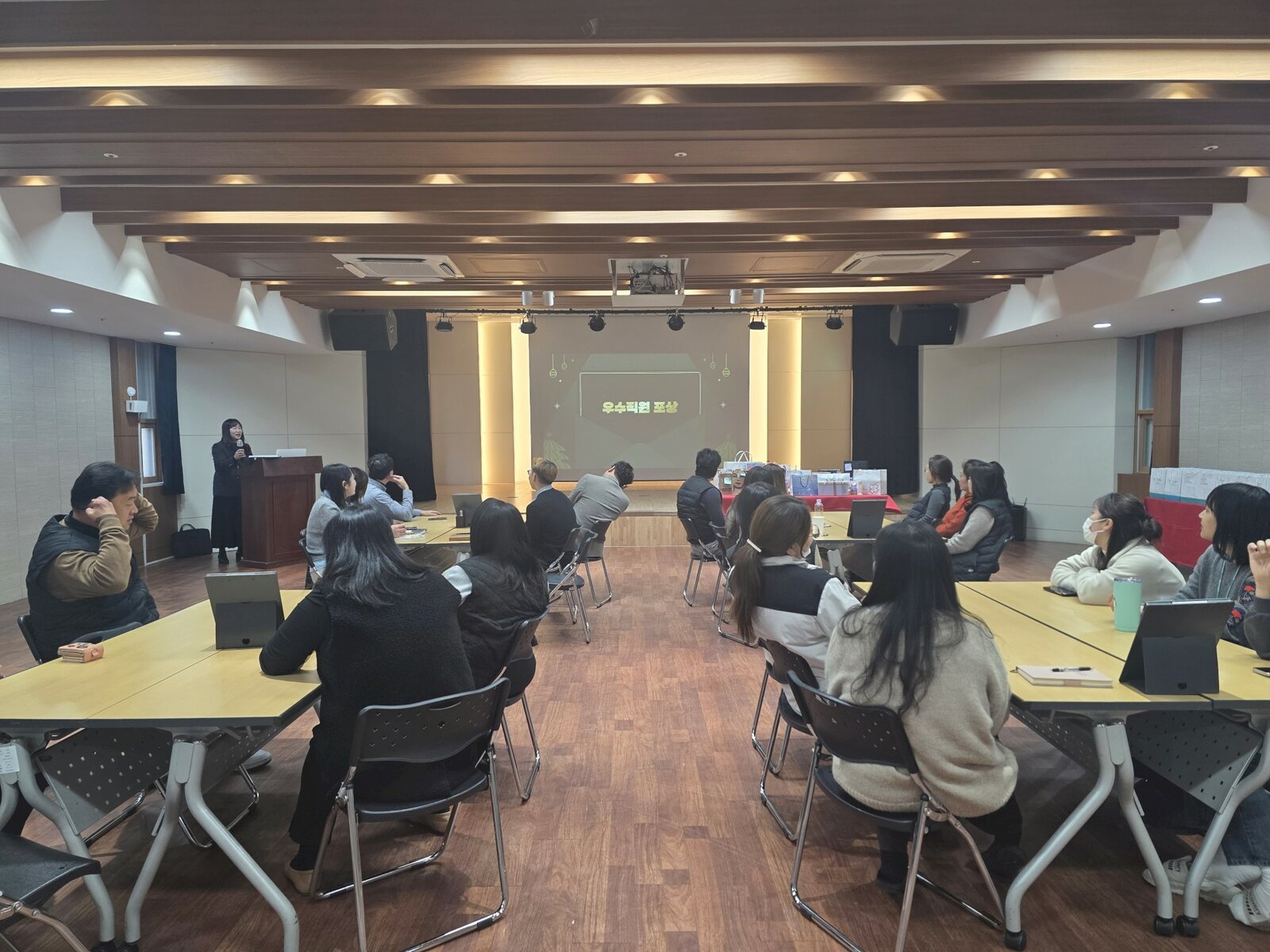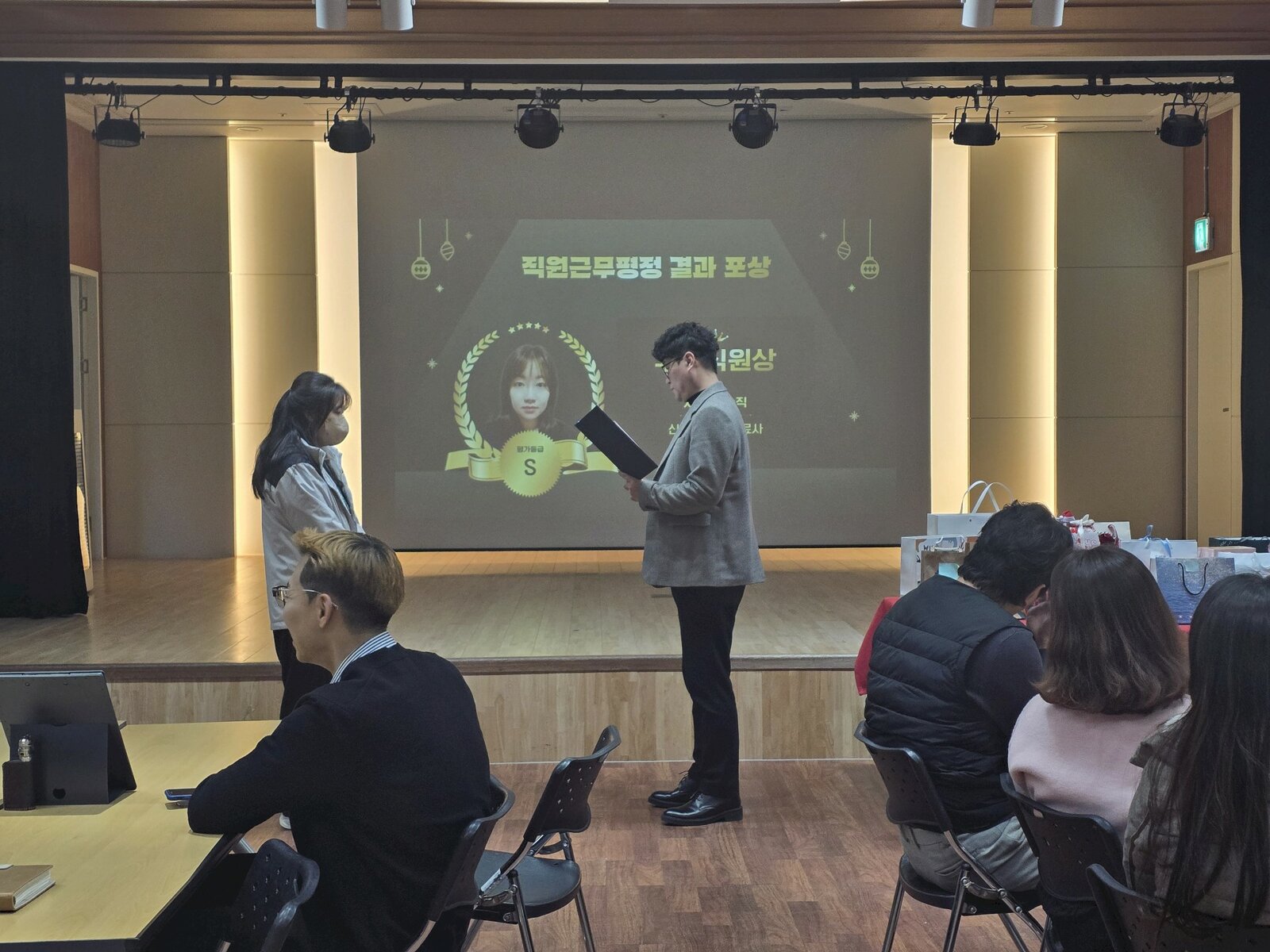 직원들이 한자리에 모여 웃음과 감사가 가득한 종무식을 진행했습니다.