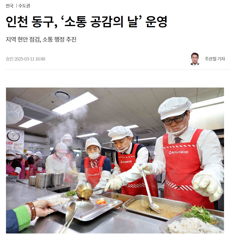 인천 동구청장 '소통 공감의 날' 무료급식 배식봉사 진행